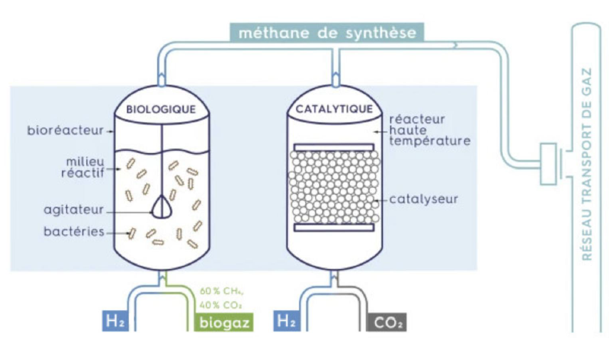 La méthanation est une réaction chimique permettant de convertir le dioxyde de carbone (CO2) en méthane (CH4) en présence d’hydrogène (H2). Elle constitue une brique technologique essentielle dans la stratégie de décarbonation de l’ensemble des usages gaziers qui devra être atteinte en 2050. Couplée à la production d’hydrogène renouvelable, la méthanation offre ainsi une solution efficace pour valoriser les excédents d’électricité issus de sources intermittentes sous forme d’un gaz vert, facilement stockable et transportable via les infrastructures existantes. Le procédé de méthanation biologique repose sur l’activité de micro-organismes anaérobies, capables de réaliser cette conversion dans des conditions opératoires plus douces que les procédés catalytiques thermochimiques. Il présente un fort potentiel d’intégration dans la filière de la méthanisation, en permettant une valorisation du CO2 du biogaz (jusqu’à 45 % du biogaz brut) et donc une augmentation substantielle de la productivité des méthaniseurs.